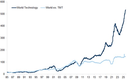 Bubbles are historically driven by an exuberance that builds around a transformative technology, attracting investors, capital and new entrants. “Typically, bubbles exhibit rapidly rising asset prices, extreme valuations and significant systemic risks driven by increased leverage” – Goldman Sachs.