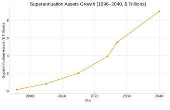 The system’s growth trajectory remains formidable. With the Superannuation Guarantee rising from 11% to 12%, and an ageing population entering peak accumulation years, industry projections suggest assets could reach $5.5 trillion by 2027 and potentially $9 trillion by 2040.