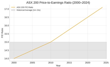 The ASX’s total market capitalization stands at approximately $2.6 trillion, meaning superannuation funds own roughly 25% of the entire Australian equity market. This persistent, mandated bid has compressed risk premiums and inflated valuations beyond fundamental justifications. The ASX 200’s price-to-earnings ratio has averaged 17-18x over the past five years, elevated compared to historical averages of 14-15x prior to 2010. At present, the forward PE is 19x, close to the top of its historic range.